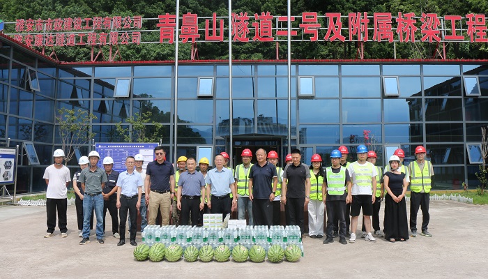 為切實(shí)做好高溫天氣下一線職工的勞動(dòng)保護(hù)和防暑降溫工作,連日來(lái),城投公司黨委書(shū)記、董事長(zhǎng)羅倫全,黨委副書(shū)記、董事、總經(jīng)理范勇分別帶隊(duì),深入青鼻山隧道二號(hào)及附屬橋梁工程、雅州印項(xiàng)目施工現(xiàn)場(chǎng),親切慰問(wèn)奮戰(zhàn)在酷暑中的一線建設(shè)者。公司黨委委員、副總經(jīng)理茍剛,黨委委員、副總經(jīng)理瞿橫空陪同慰問(wèn)。