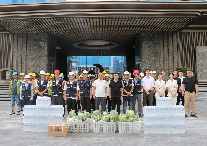 慰問(wèn)組一行深入施工現(xiàn)場(chǎng),為奮戰(zhàn)在高溫下的一線建設(shè)者送去了礦泉水、藿香正氣液等防暑降溫物資,向他們致以誠(chéng)摯的問(wèn)候和衷心的感謝,并詳細(xì)詢問(wèn)了大家的工作生活狀況和防暑措施落實(shí)情況,反復(fù)叮囑大家要?jiǎng)谝萁Y(jié)合,務(wù)必把身體健康和生命安全放在首位,科學(xué)合理安排作息時(shí)間,嚴(yán)格落實(shí)各項(xiàng)防暑降溫措施,確保平安度夏。