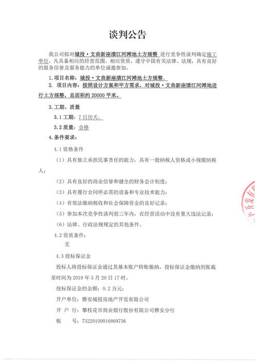 城投·文曲新座濆江河灘地土方規(guī)整競(jìng)爭(zhēng)性談判公告