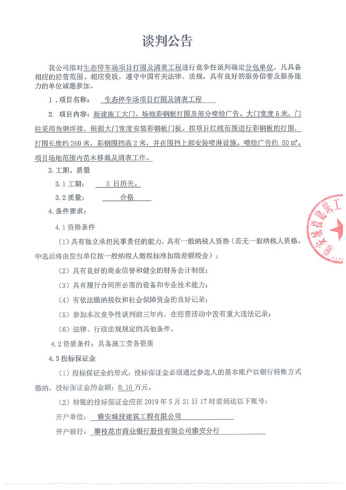 生態(tài)停車(chē)場(chǎng)項(xiàng)目打圍及清表工程競(jìng)爭(zhēng)性談判公告