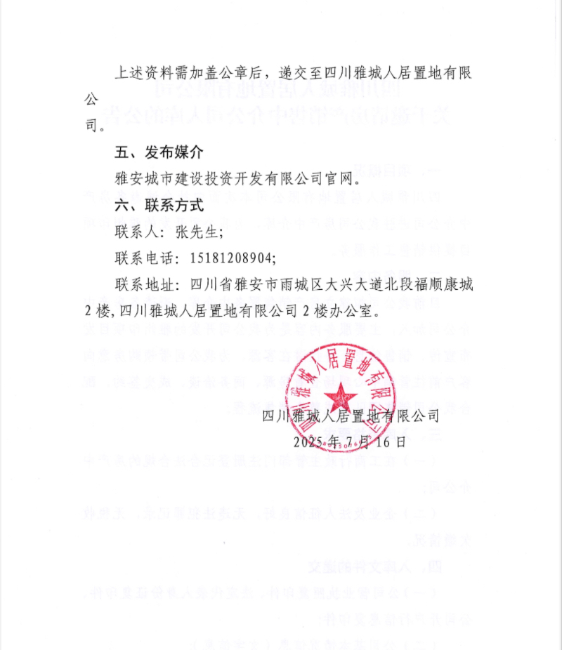 四川雅城人居置地有限公司關(guān)于邀請(qǐng)房產(chǎn)銷售中介公司入庫(kù)的公告